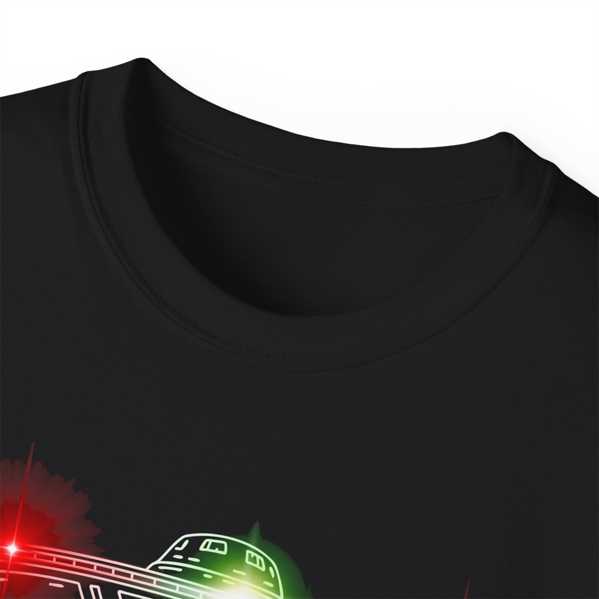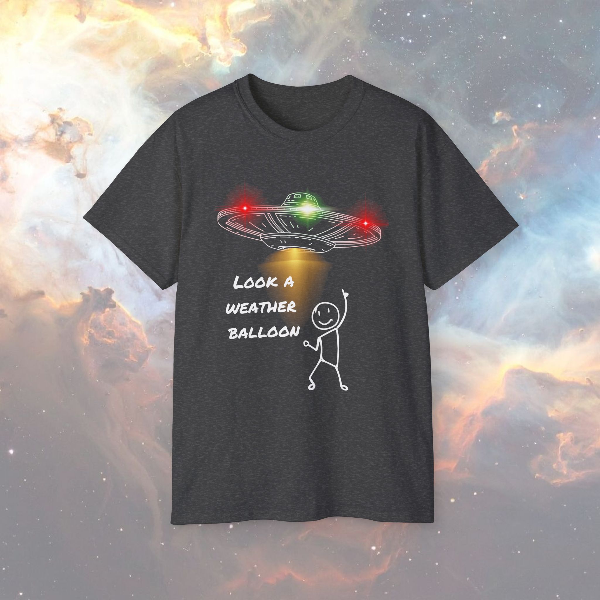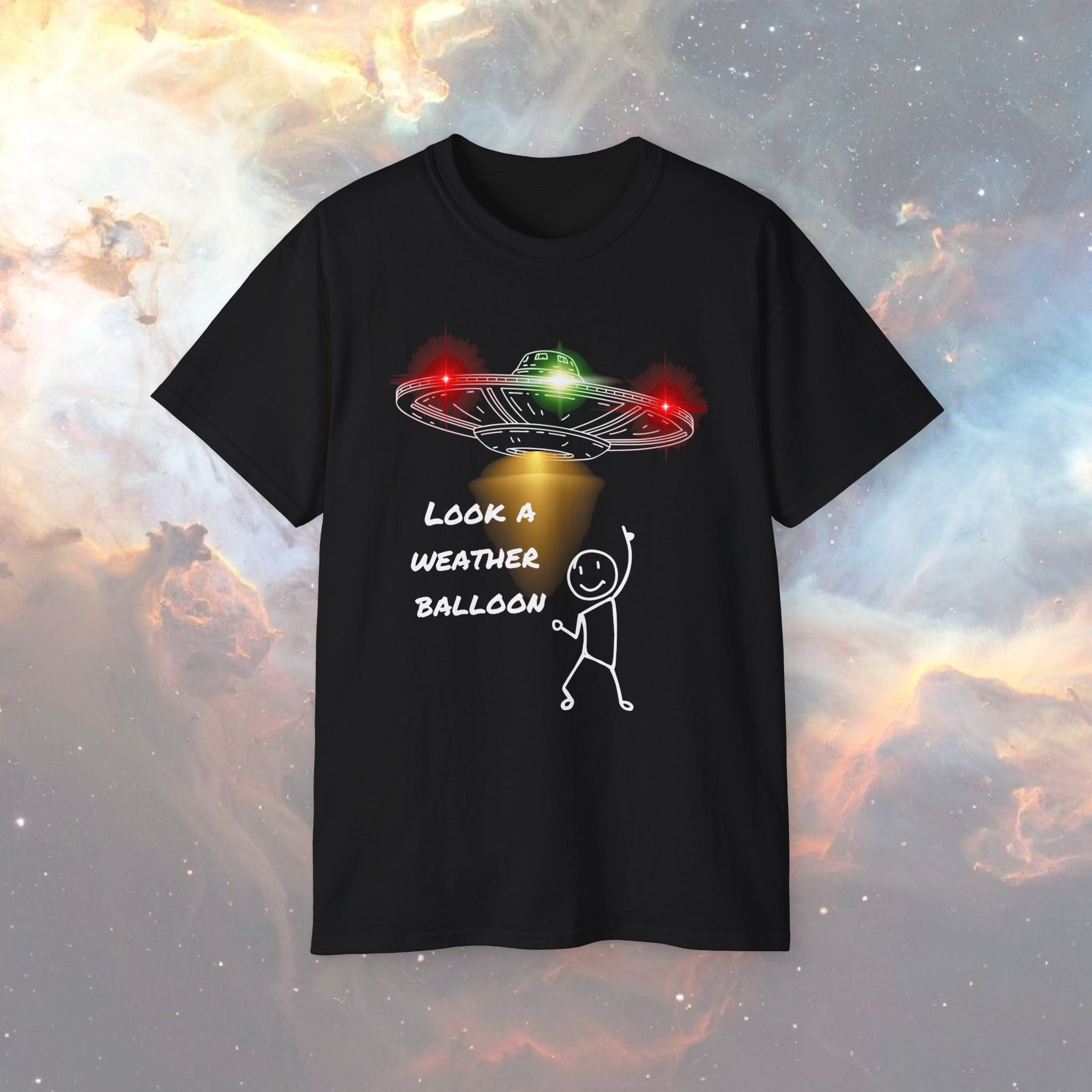 Printed on soft, unisex cotton with bold colors that stand out like a light in the night sky, it’s the perfect shirt for alien believers, skeptical thinkers, or anyone who enjoys messing with the narrative.